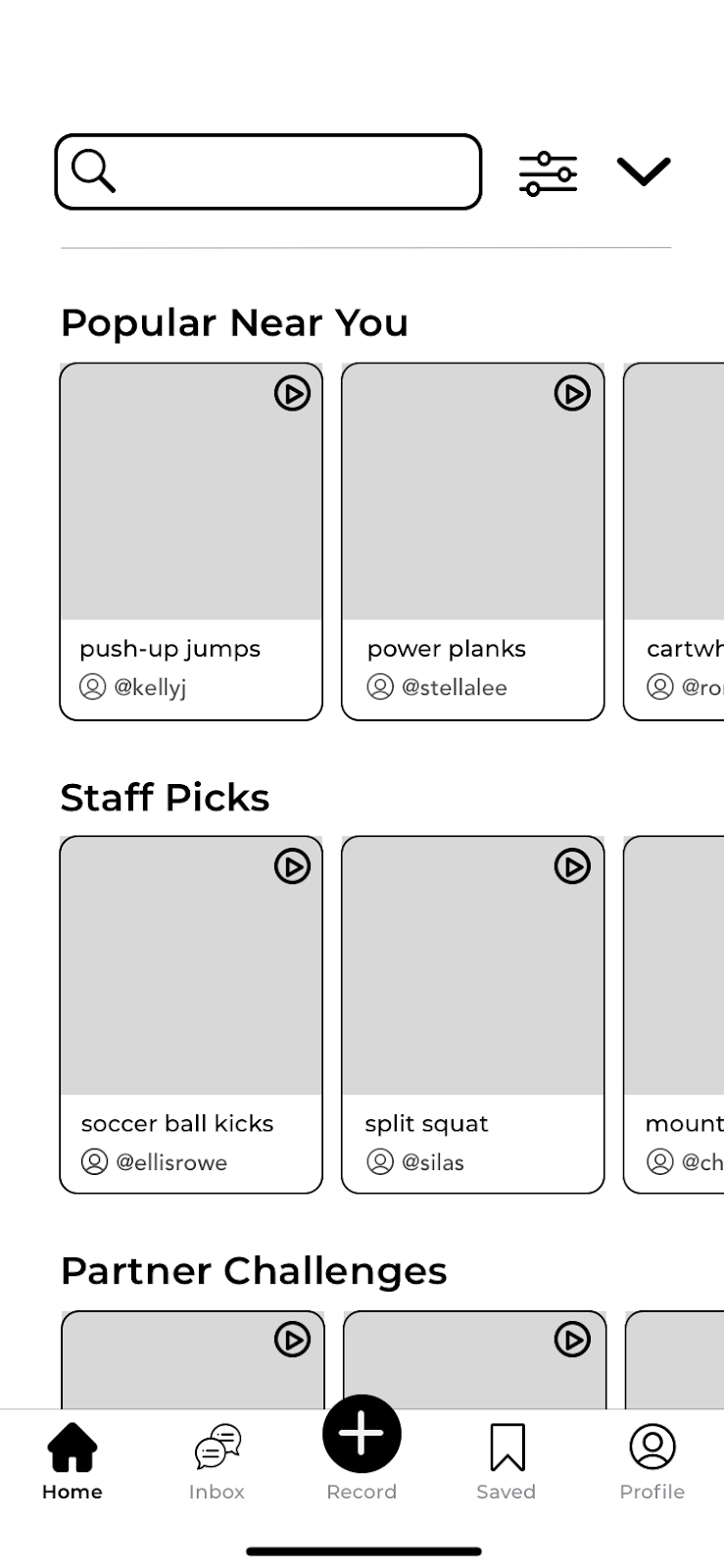 Users can view the challenges sent by friends in their inbox and can respond with or without recording themselves doing the challenge. They can also view their saved challenges as well as their profile to see their achievements , history, settings etc.